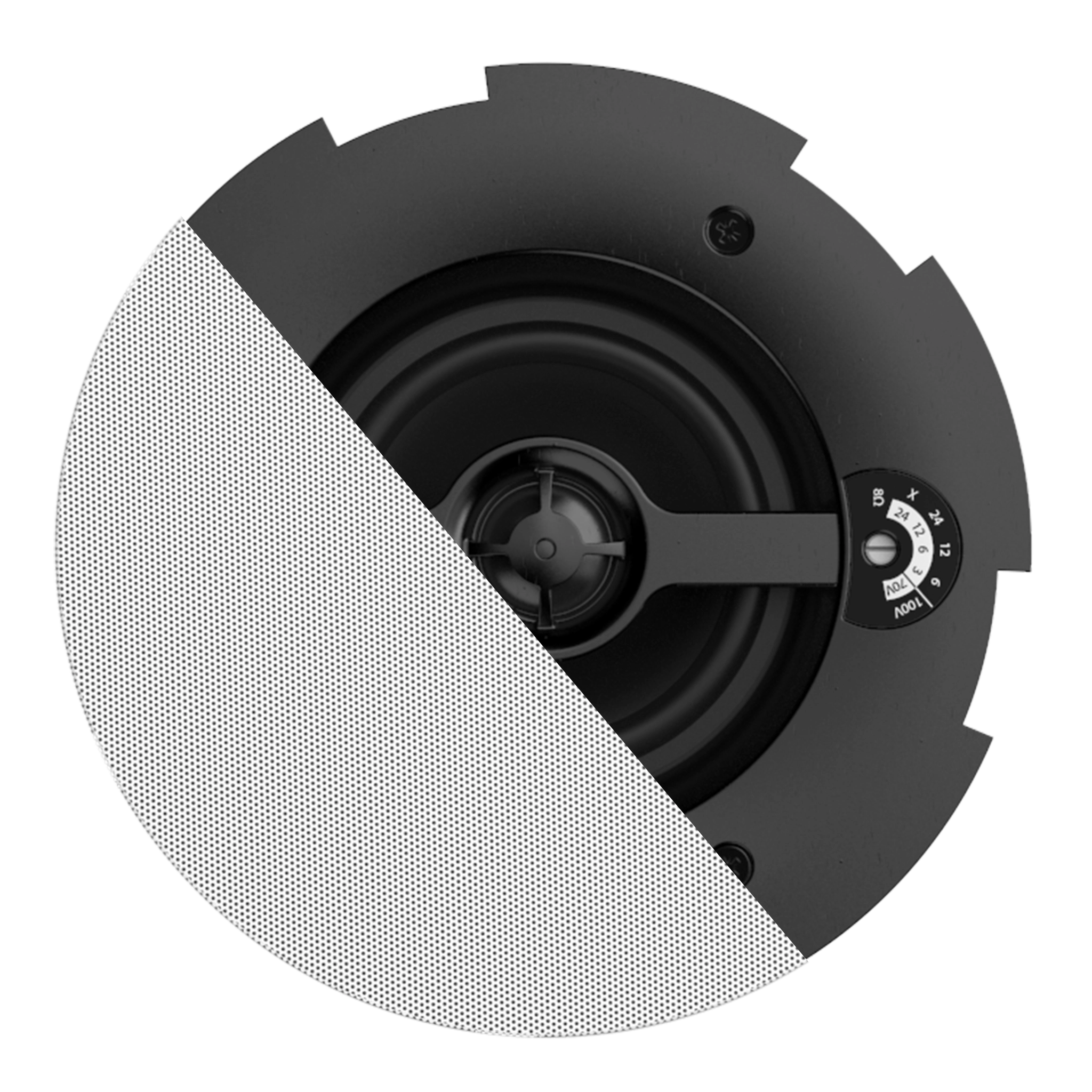 Safelatch™ 2 yollu 4 inç tavan hoparlörü, TwistFix™ ızgarasıyla birlikte.